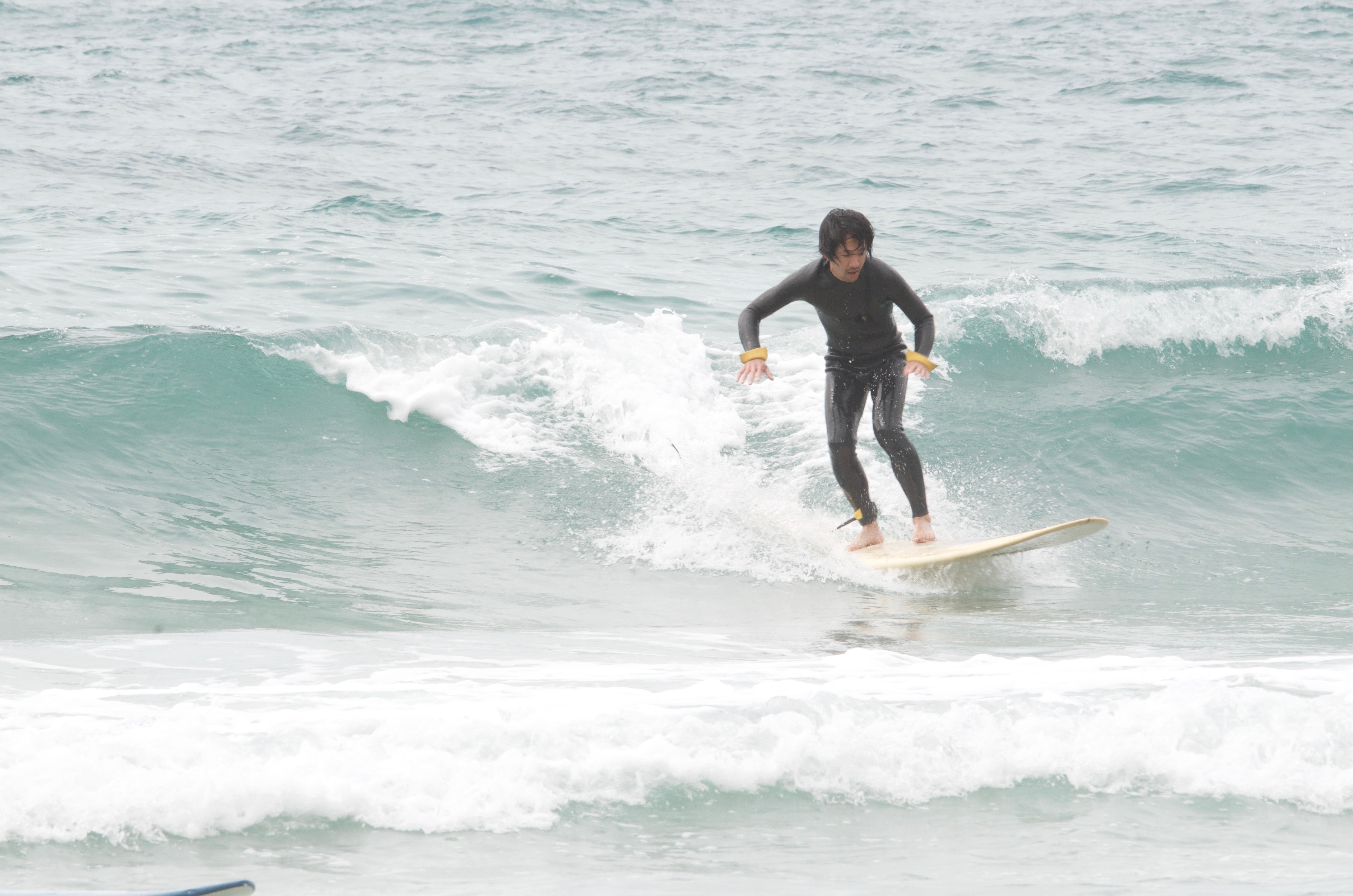 次はカップル、人の3倍ぐらいの運動量でせめていました!もちろん短時間でテイクオフをメイク。サーフィン初体験とは思えません!